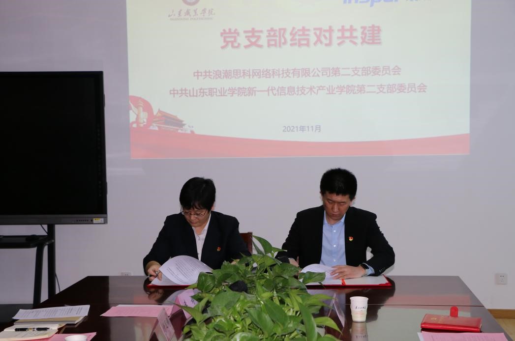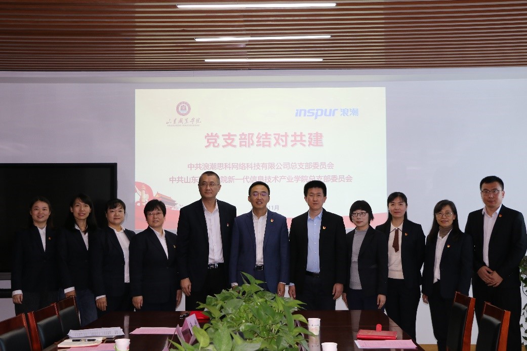 为进一步提升党支部党建工作水平,形成“以共建促党建,以党建促业务,以业务强党建”的工作机制,11月11日,浪潮思科网络科技有限公司第一、第二党支部与我校新一代信息技术产业学院第一、第二党支部共同开展支部共建活动。浪潮思科网络科技有限公司张柯副总经理、新一代信息技术产业学院杨文虎书记及双方总支、支部委员参加了本次活动。