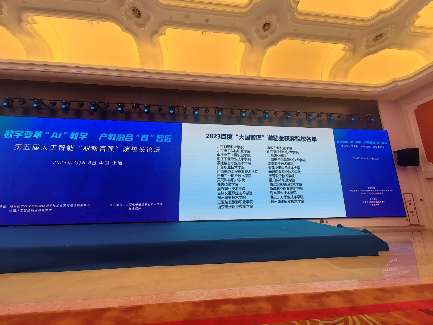 2023年7月7日,第五届人工智能“职教百强”院校长论坛召开期间,百度“大国智匠”激励金项目获奖学校名单正式揭晓,我校新一代信息技术产业学院姜海岚教师带领的团队获得百度资金与技术支持。