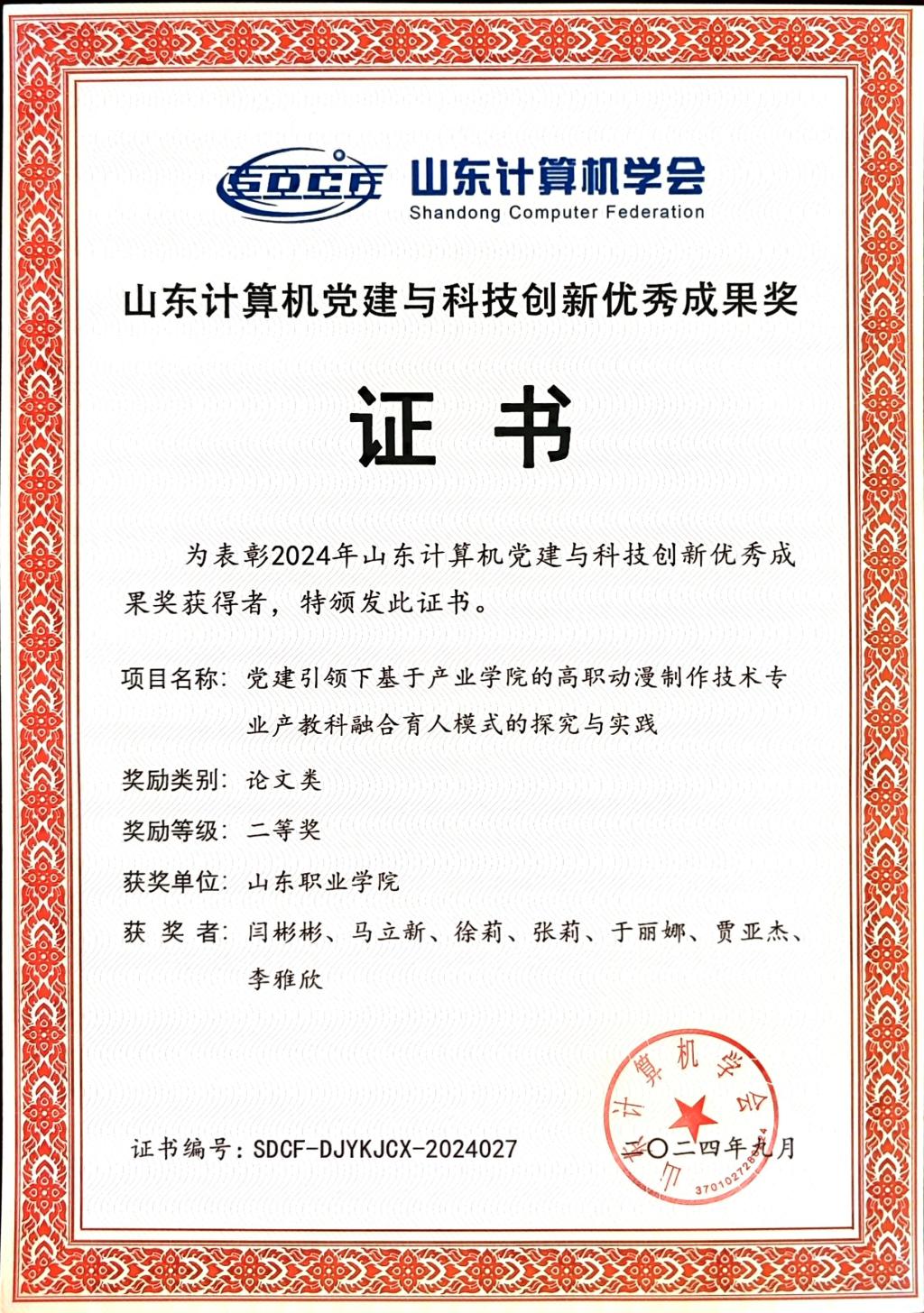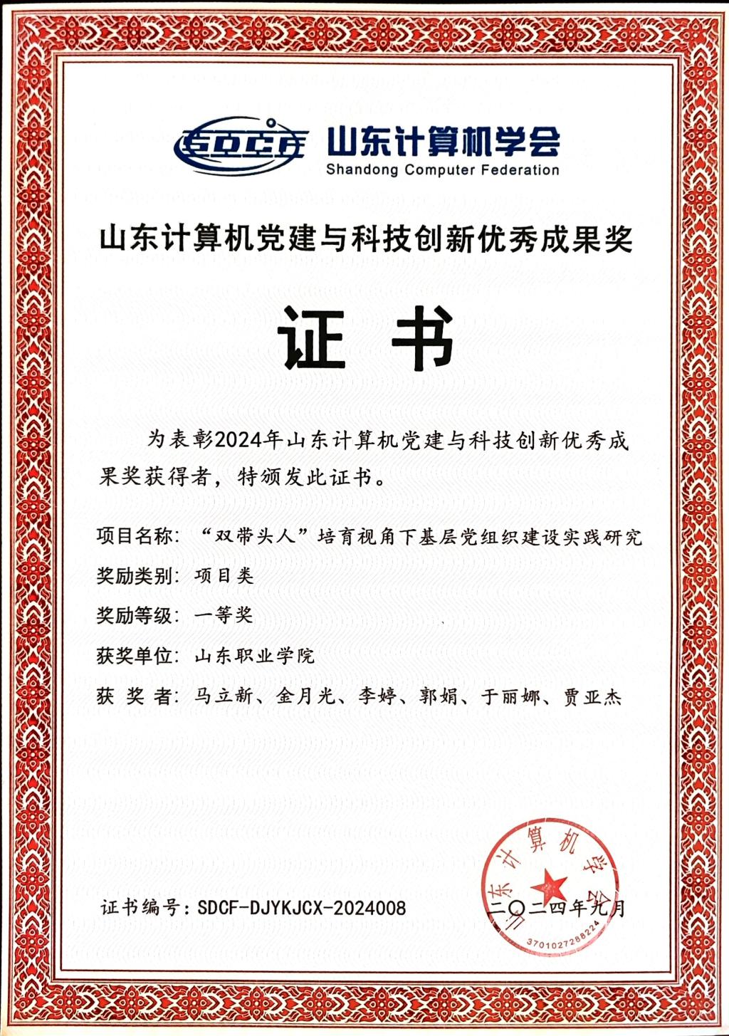 10月11日至13日,山东计算机学会党建与科技创新工委在聊城组织召开了“2024年山东计算机学会党建论坛”。本次会议由聊城大学承办,山东融谷控股有限公司、青岛中享思途教育集团协办,会上举行了“2024年山东计算机党建与科技创新优秀成果奖”颁奖仪式,该奖项面向全省计算机信息技术领域的本科、高职院校和优秀企业,引领推动党建工作与科技创新深度融合创新发展。Beplay体育官方网站获得一等奖1项、二等奖1项。