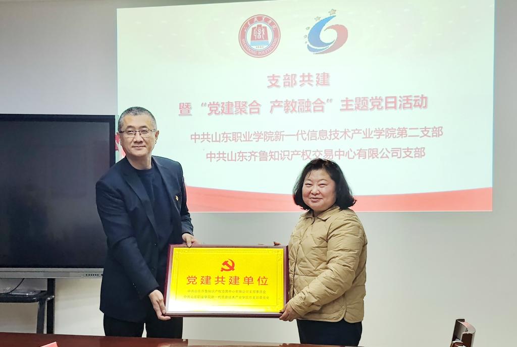 杨文虎介绍了我院党建工作做法成效。桑文新介绍了山东齐鲁知识产权交易中心党建经验和产教融合方面的优势。双方对党建和业务活动达成了共识,积极推进优势互补、资源共享。双方签署了党建联创共建协议书,开展了第一次主题党日活动。