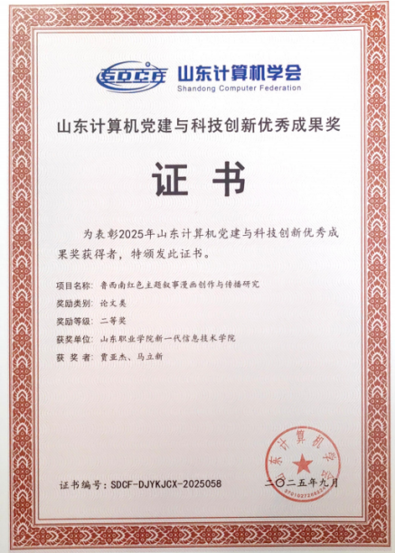 此次获奖既是对我校现有成果的肯定,更是未来发展的动力。展望未来,我校新一代信息技术学院将以获奖为起点,深化红色文化与数字技术融合研究,巩固优势领域;同时依托年会交流平台,加强与省内高校协作,加快成果转化,培养更多高素质复合型技术技能人才。在山东计算机学会党建与科技创新工委的统筹下,我校也将持续为山东党建科创事业、地方数字经济发展贡献更多力量。