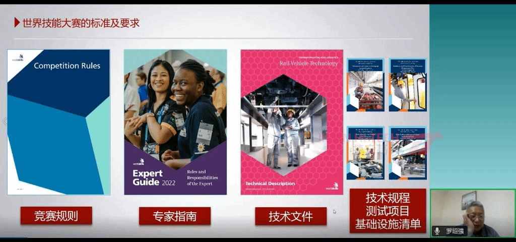 培训班邀请到了第46届世赛轨道车辆技术赛项中国技术专家组长、中华人民共和国第一届职业技能大赛轨道车辆技术项目裁判长罗昭强大师,昆明地铁运营有限公司春城首席技师刘伟大师,分别作了《世赛轨道车辆技术的发展趋势与国内成果转化应用》《浅谈X证书在高技能人才培养方向的实际应用》主题分享。我校城市轨道交通学院副院长张伟结合2020年《中国城市轨道交通智慧城轨发展纲要》,做了《智慧地铁——推动城轨高质量发展》主题分享,副院长于杨则从我校建设城市轨道交通车辆高水平专业群、打造一流实训基地、助推高水平专业群建设出发,介绍了实训基地建设的必要性、实训基地建设路径及实训基地应用成效。