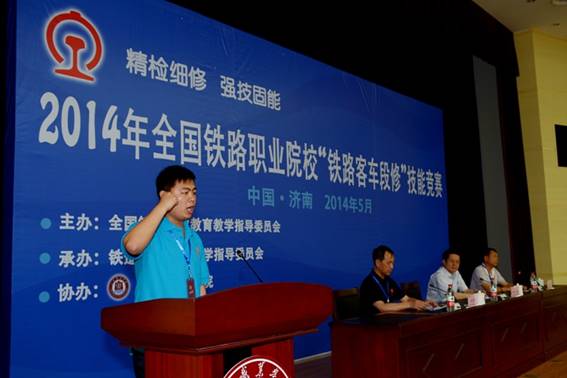 5月26日,由全国铁道职业教育教学指导委员会主办、铁道车辆专业教学指导委员会承办的2014年全国铁路职业院校“铁路客车段修”技能竞赛在Beplay体育官方网站拉开帷幕。来自全国15所铁路职业院校的136名参赛选手将在为期4天的比赛时间里分别参加《25G型客车综合控制柜使用与维护》、《检查及处理25G型客车综合控制柜空调故障》、《15号车钩钩头分解组装及试验》、《209T型转向架落成检查》、《塞拉门性能试验与故障排除》、《104型制动机单车试验》等6个实作科目和车辆钳工(中级)、车辆电工(中级)等2个理论科目的比拼。