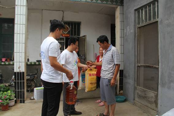 为传播食品科学文化知识,增强农村地区对毒品和艾滋病的了解,便于提高村民自我保护能力, 7月12日,系党总支书记王广勇带领由五名教师及六名志愿者组成的实践服务队走进临沂徐家岭村、前小炉村开展贫困生走访工作和以“共撑安全伞”为主题的食品安全禁毒防艾宣传。此次活动走访了徐家岭村张富雪、前小炉村李扶军两名同学的家,老师们为家庭经济困难学生家带来了米、面、油等生活物品,了解贫困生家庭情况、生活状况、住房条件和生活来源,并向学生家长详介绍了学院情况及学生在校表现。王书记向给家长介绍了国家、学院的各类资助扶持政策,鼓励贫困学生要在逆境中树立自信、磨砺人生、奋发图强。此次走访,体现了学校对家庭经济困难学生的关怀,通过实地查看深入了解了学生的家庭状况,为精准扶助提供依据,并增进了家长对学校的了解,利于共同努力帮助学生顺利完成学业。