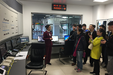 在范村车辆基地,考察团参观了运营控制中心、基地培训中心的模拟驾驶实训中心、地铁1号线模拟沙盘系统、DCC车辆调度中心、乘务派班室、车辆检修库等场所,深入了解了地铁1号线的实际运营情况。师生们还饶有兴趣地登上正在检修的电客车司机室,近距离了考察了有关结构,采集了有关数据,为后续开发专业课程、制作VR视频收集了宝贵资料。