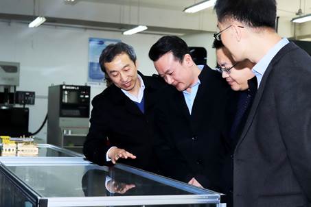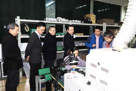 郭鹏陪同田荣华一行参观了机械系数控实习车间、机电创新实训室、SMT实训室、VBSE实训基地、城市轨道交通实训基地、创新实践基地场地等实训场所,田荣华对学院实验实训条件给予了高度赞许。