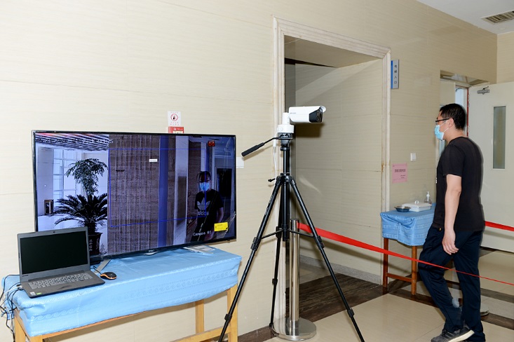 在教学区,每栋教学楼前都设置了隔离带和隔离条,安排专人进行体温检测,保障学生安全有序进入。图书馆门口安置了电子测温仪进行实时测温监控,馆内电梯每天都会用84消毒液和酒精消毒两次,每天都会更换电梯按键板保护膜,电梯间、电梯内准备了专用抽纸,一层电梯口放置了消毒用品。