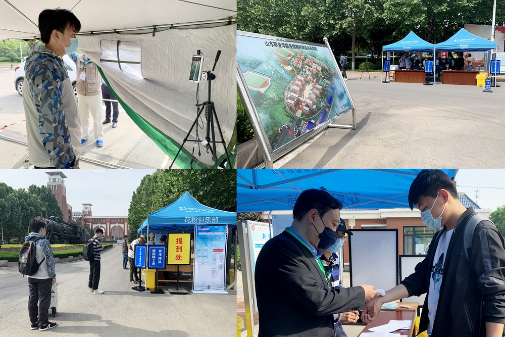 “欢迎回家!”5月16日,我院迎来春季学期首批返校76名学生。一大早,老师们已经在校门口等候。校门外专门设置了醒目的学生通道,防护防疫物品均准备到位。按照报到流程,同学们经过测量体温和消毒后,重返阔别已久的校园。