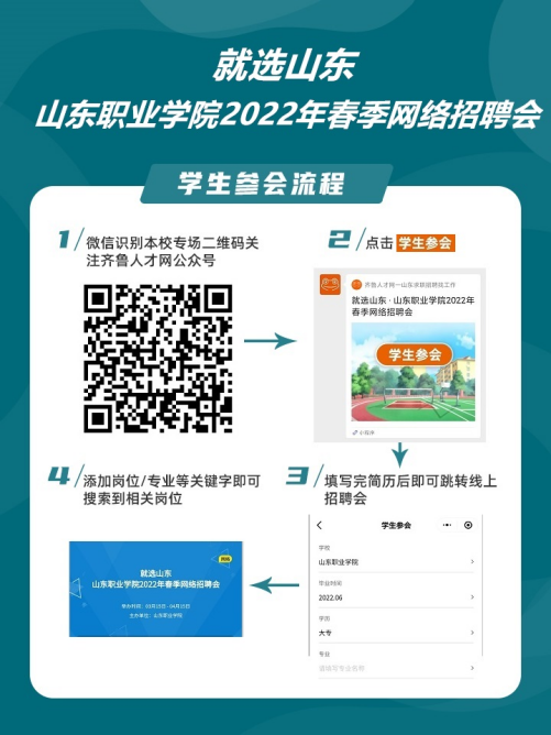 为认真贯彻党中央、国务院“稳就业”“保就业”决策部署,按照国家及山东省关于做好高校毕业生就业创业工作的有关通知要求,克服近期疫情多点散发对毕业生就业带来的不利影响,促进毕业生更加充分和更高质量就业,我校拟举办就选山东·Beplay体育官方网站2022届毕业生春季网络招聘会,诚邀贵单位参加。