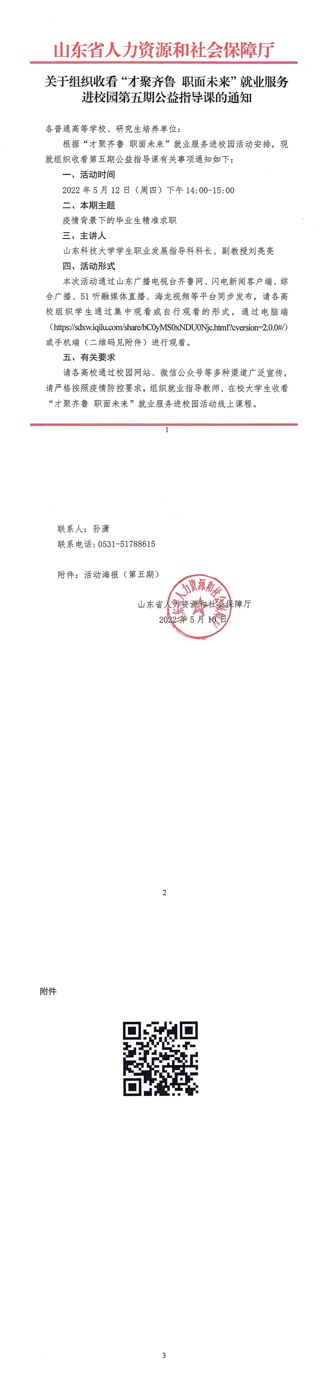 关于组织参加“才聚齐鲁 职面未来”就业服务进校园第五期公益指导课的通知