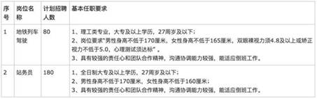 5、站务管理岗位要求“男生身高不低于170厘米,女生身高不低于160厘米”;地铁列车驾驶岗位要求“男生身高不低于170厘米,女生身高不低于165厘米,双眼裸视力须4.8及以上或矫正视力不低于5.0,心理测试须达标” ;