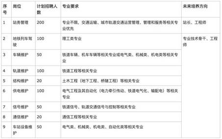 杭州市地铁集团有限责任公司成立于2002年6月,是从事杭州市轨道交通工程的建设、运营、经营、管理、物业开发等业务的大型国有企业。杭州市地铁集团有限责任公司运营分公司成立于2010年8月,是杭州市地铁集团有限责任公司下属单位,主要负责杭州地铁的线路运营、维护及安全管理等业务。 运营分公司秉承以人为本的理念,视人才为推动企业成长与发展的原动力,为员工创造各种能充分施展才能的条件,提供广阔的职业发展平台,使之成为每一位员工成就理想、实现人生价值的最佳选择。 杭州地铁已建成地铁1号线、2号线、4号线一期并实现成网运营,目前运营里程117.6公里。2022年亚运会前,杭州地铁将建成500多公里的轨道交通网络。 为提早做好后续线路人才筹备工作,为地铁后续线路提供人力资源保障,在2022年亚运会开通前,计划招聘人数近达上万人,近期招聘计划如下:
