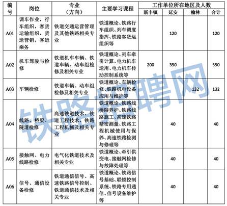 本次招聘岗位均为铁路运输生产一线操作技能岗位,招聘岗位、人数、专业等信息见附件1。