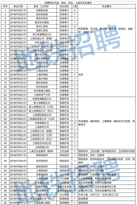 中国铁路上海局集团有限公司根据企业发展需要,拟招聘2019年应届全日制本科及以上学历普通高等学校毕业生,现将具体事项公告如下: