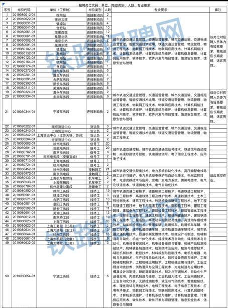 中国铁路上海局集团有限公司根据运输生产工作需要,拟招聘2019年应届全日制普通高等职业院校高职(大专)毕业生,现将具体事项公告如下: