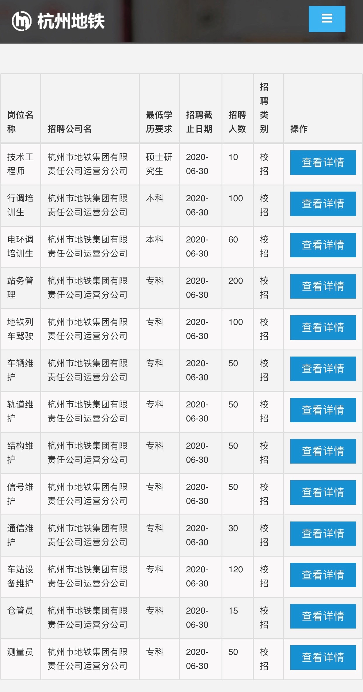 1000人+,专科可报!杭州市地铁集团运营分公司公开招聘