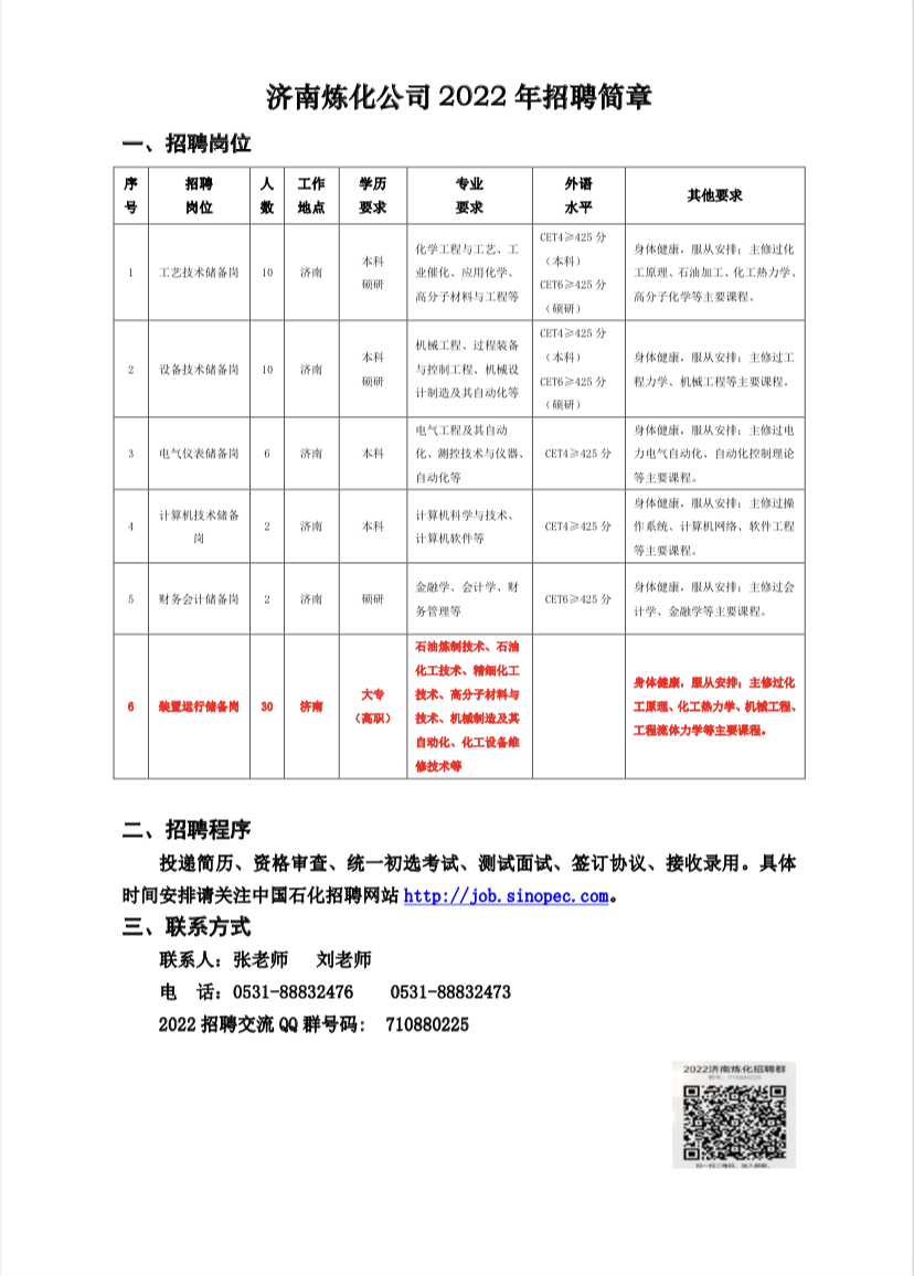 济南炼化公司2022年招聘简章