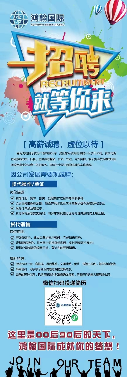 青岛鸿瀚国际货运代理有限公司招聘简章