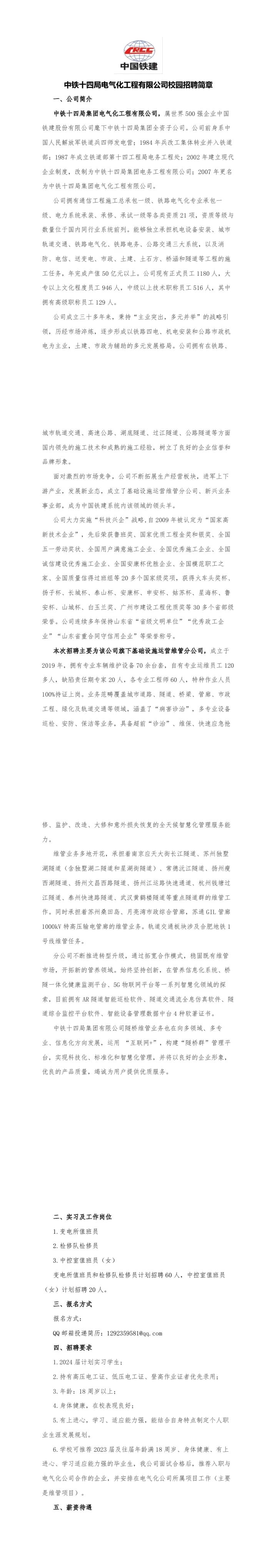 中铁十四局电气化工程有限公司2023年校园招聘简章