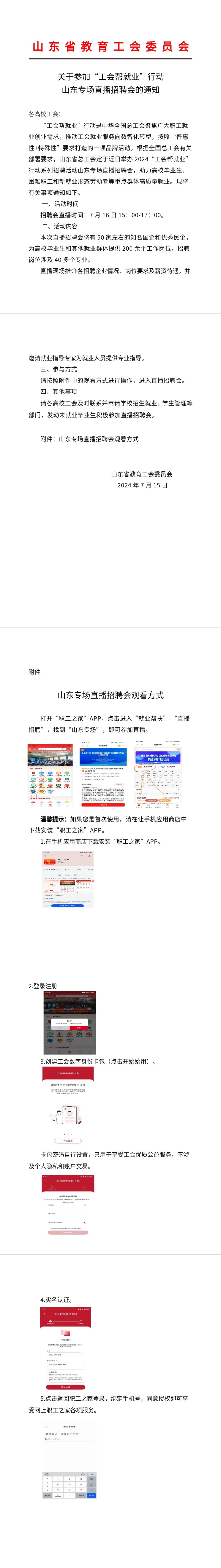 关于参加“工会帮就业”行动 山东专场直播招聘会的通知