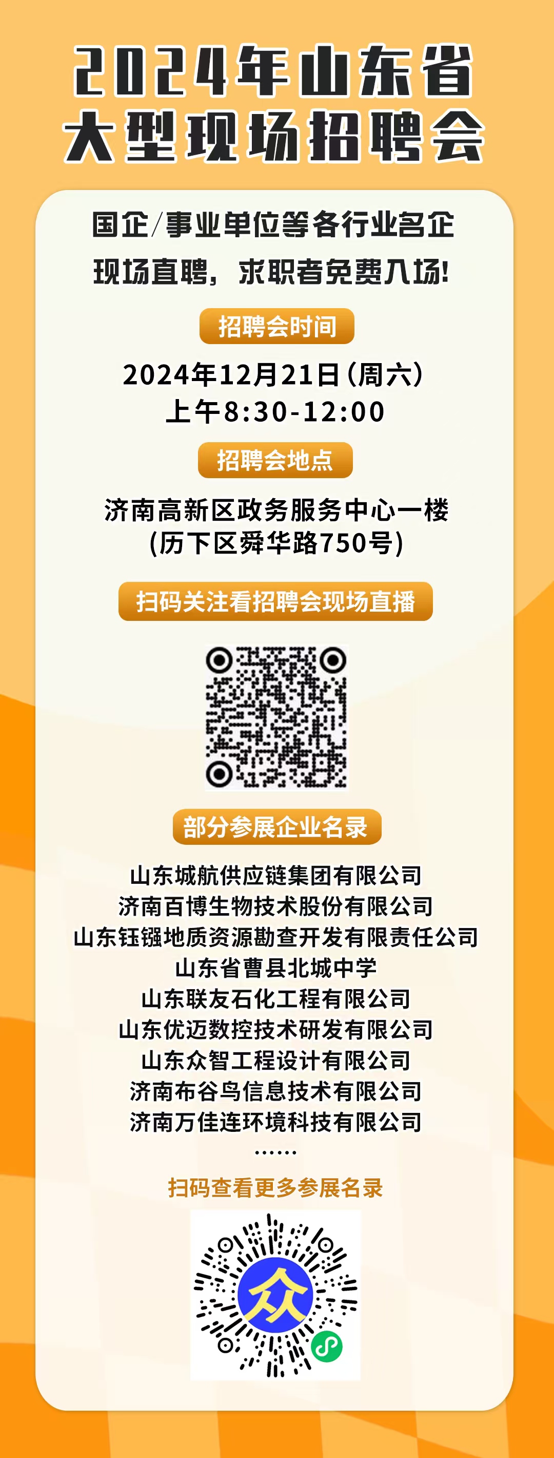 本周六组织的现场招聘会,在济南高新区政务服务中心,有意向的自主参与,来不了的也可以线上看招聘单位直播。