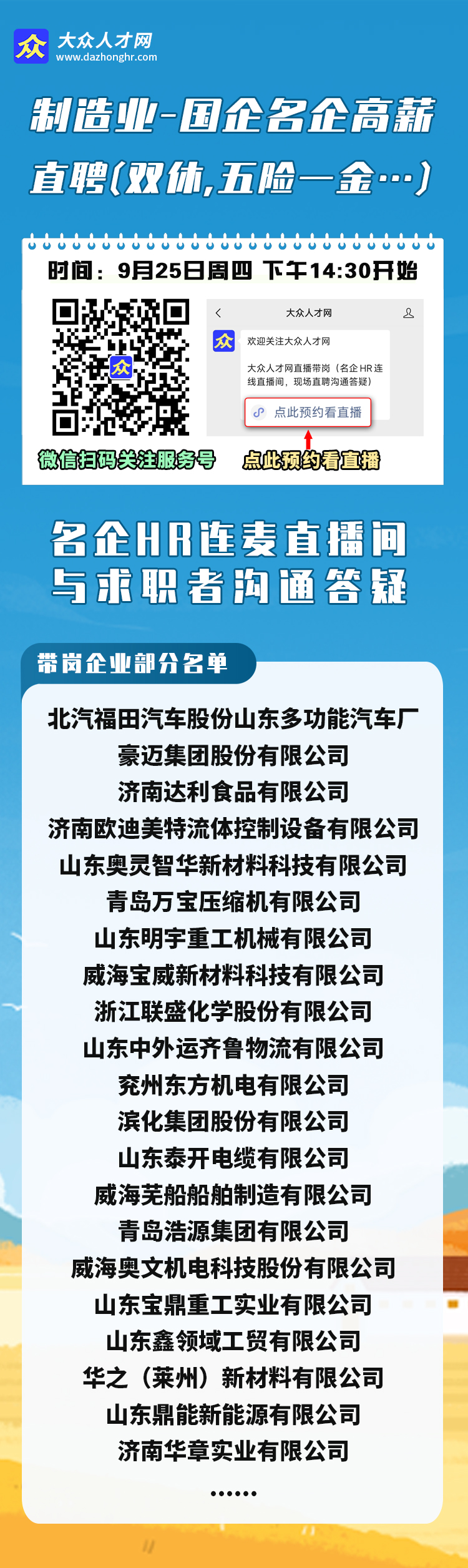 制造业-国企名企高薪直聘(双休,五险一金…)