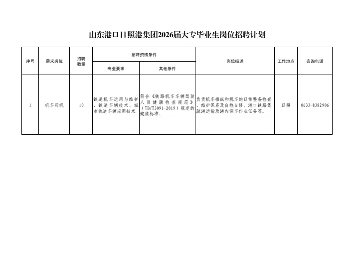 附件:1.山东港口日照港集团2026届大专毕业生岗位招