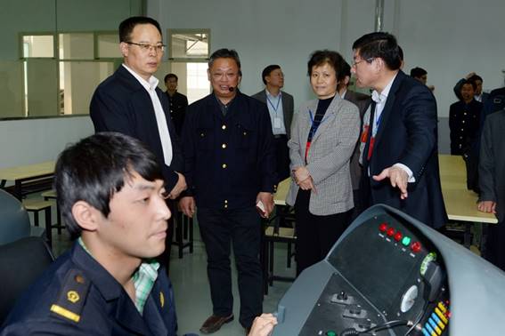 视察期间,王荣昌、秦河向孙伟一行简要介绍了学院新校区建设、国家骨干高职院校建设、牵头组建山东省轨道交通职业教育集团、校企合作办学体制机制创新、特色专业建设、特色人才订单培养、“3+2”本科教育、招生就业、大学生创新教育等相关工作情况。孙伟看到、听到学院各项事业蓬勃发展、蒸蒸日上感到非常高兴,对学院各项工作创新发展及国家骨干高职院校建设成果表示满意。他指出,在全省加快推进现代职业教育体系建设的进程中,学院既要抓住机遇、抓牢机遇,又要利用优势、发挥优势,突出自己的专业特色,打造响亮的职教品牌。