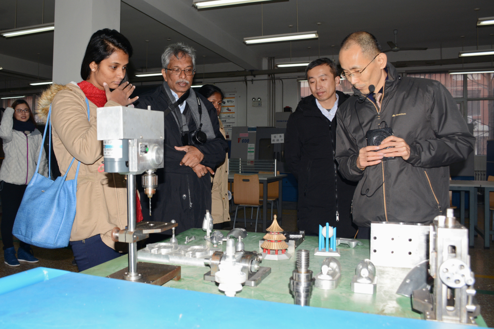 会后,斯里兰卡莫勒图沃大学教师代表团参观了机械制造工艺实训车间,现代通信技术综合实训基地、铁路施工技术实训场,轨道交通综合实训中心,信号和控制实验室等,各实训室和演练场所内均由专业教师向来宾用英文做了详细的讲解,讲解精彩,加深了来宾对实训设备、项目教学和教学做一体化的理解。