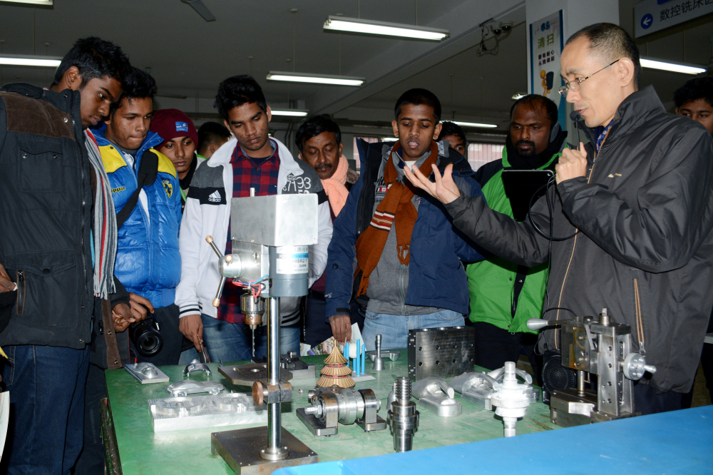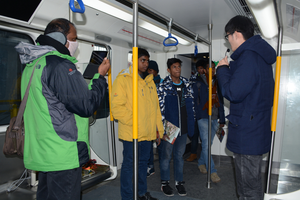 为迎接国际友人访问,学院培训了一支英语学生讲解员和志愿者,用英语介绍校园环境,各实验实训场所“双语”教师介绍设备及功能。在数字化数控加工车间、机械制造工艺实训车间,现代通信技术综合实训基地、SMT实训室、铁路施工技术实训场,学生们认真学习、详细了解各实训设施设备性能及工作原理,赞叹我院的“教学做”一体化课堂环境。在机电系举办的创新产品博览会上,斯里兰卡学生们对我院学生设计制作的机器人、激光雕刻等各种创新作品,兴趣浓厚,交流讨论。在轨道交通综合实训中心,学生们被数台不同类型的城轨实训车吸引,纷纷驻足,拍照留念。
