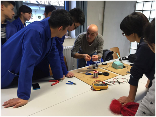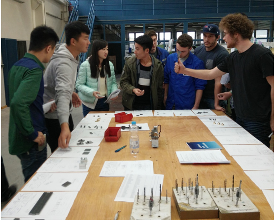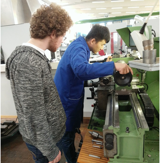 项目合作以车床模型的设计与制作为载体,德中学生三个人为一个小组合作进行车床模型项目的设计、零件加工、钻孔、装配、电路设计及焊接、整体调试等整个过程,在双方老师的帮助下,学生克服交流困难,成功完成整个项目的合作,并且在这个过程中还相互学习到很多更好的解决问题的方法。