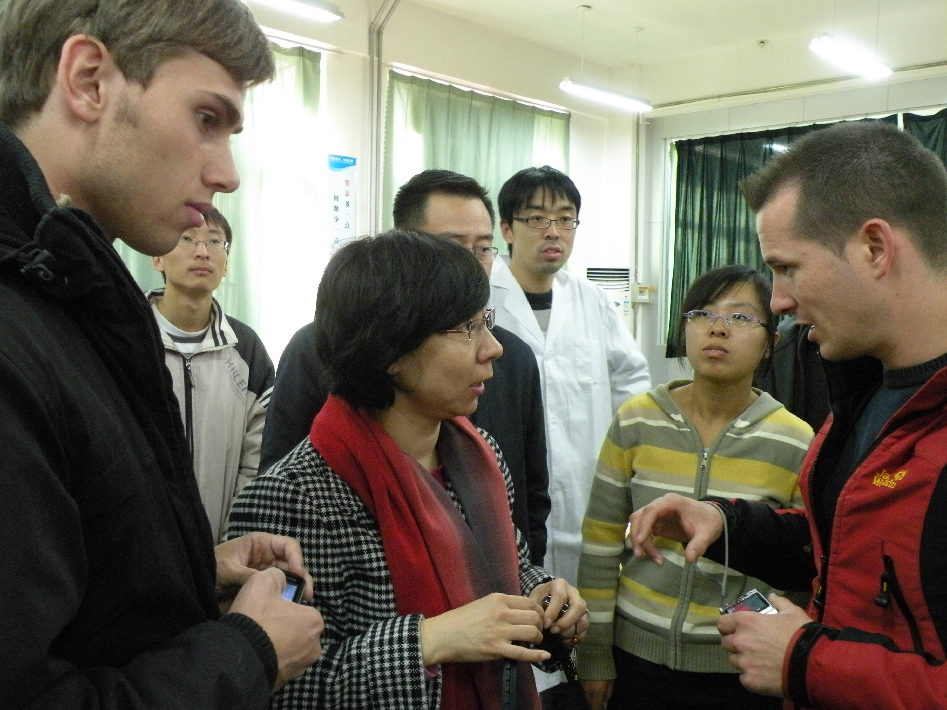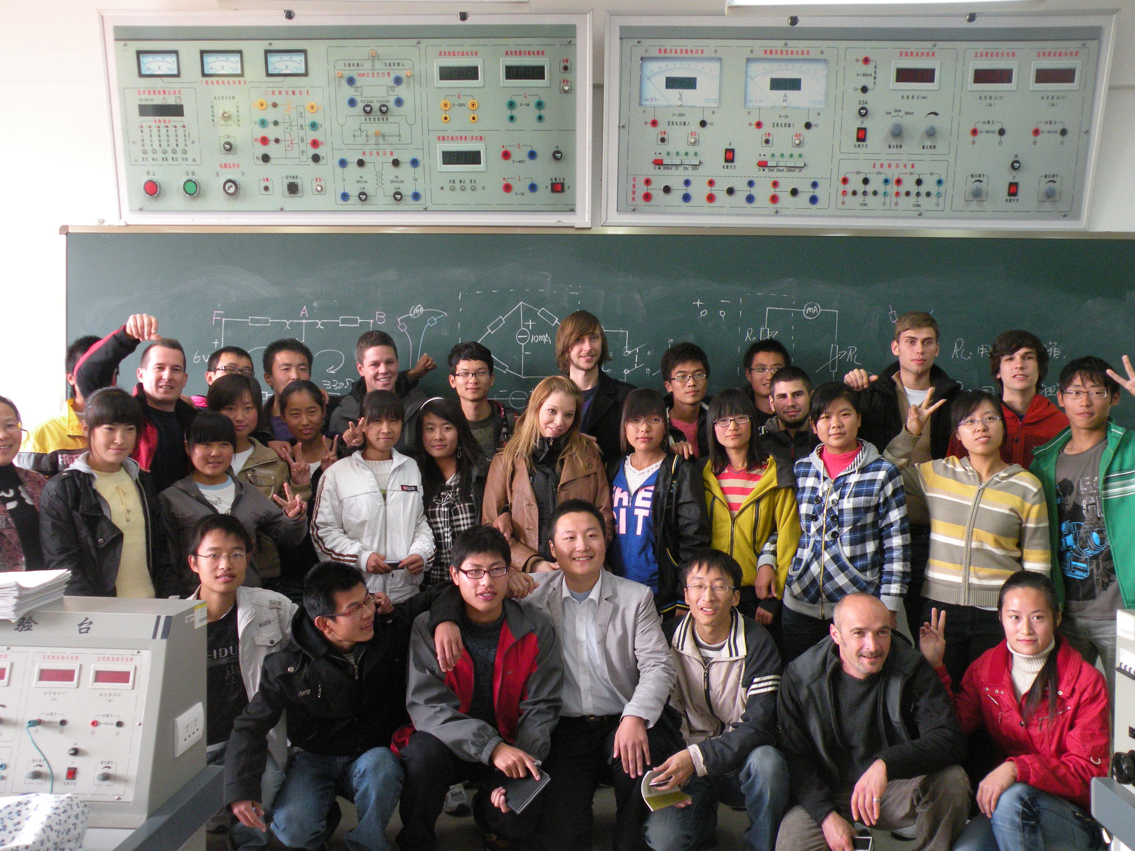 10月28日上午,德国师生到我系电工电子项目教学教室参加学习交流。在电工电子项目教学负责人刘刚老师的指导下,双方师生一起开展了《精密数钟的设计与制作》项目的教学活动。在刘刚老师与德国教师的指导下,双方同学经共同努力,成功完成了该项目的设计与制作。德国学生拿着自己的作品和我系学生一起拍照留念,幸福的笑容诠释着自己内心的喜悦。