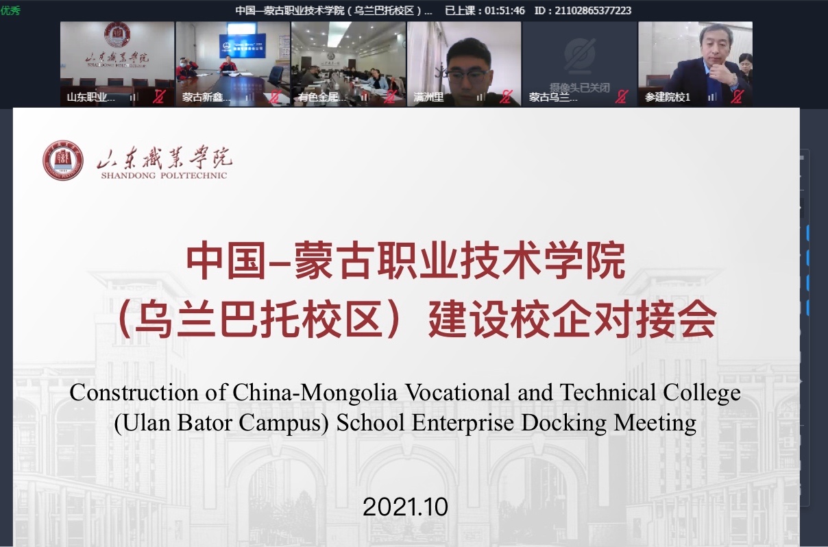 10月29日上午,我校牵头组织召开中国-蒙古国职业技术学院乌兰巴托校区建设校企对接会,副院长郭鹏、有色金属工业人才中心教育培训处处长赵丽霞、山东电子职业技术学院、德州职业技术学院、山东旅游职业学院、济南职业学院相关负责人参加线下会议,蒙古国的海外企业中铁资源新鑫有限责任公司党工委副书记潘持卿等五位企业负责人通过线上方式连线参会。