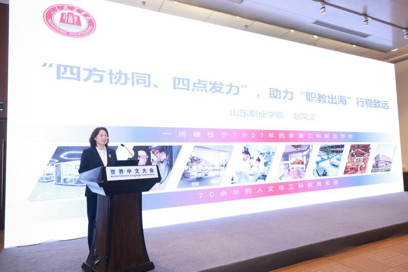 赵凤文在大会“新时代、新机遇,推动‘中文+职业技能’教育高质量发展”平行会议作交流发言,围绕打造高质量“中文+职业技能”教育支撑体系,从“中文+技能”“标准+资源”“培养+激励”和“语言+艺术”四个方面,分享了我校在“职教出海”领域的探索与实践。