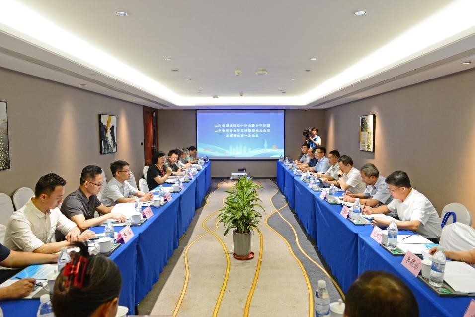郭鹏出席会议同期举行的山东省职业院校中外合作办学联盟理事会第一次会议,会议审议并通过了联盟章程及工作计划,就中外合作办学前景和联盟未来发展进行交流探讨。