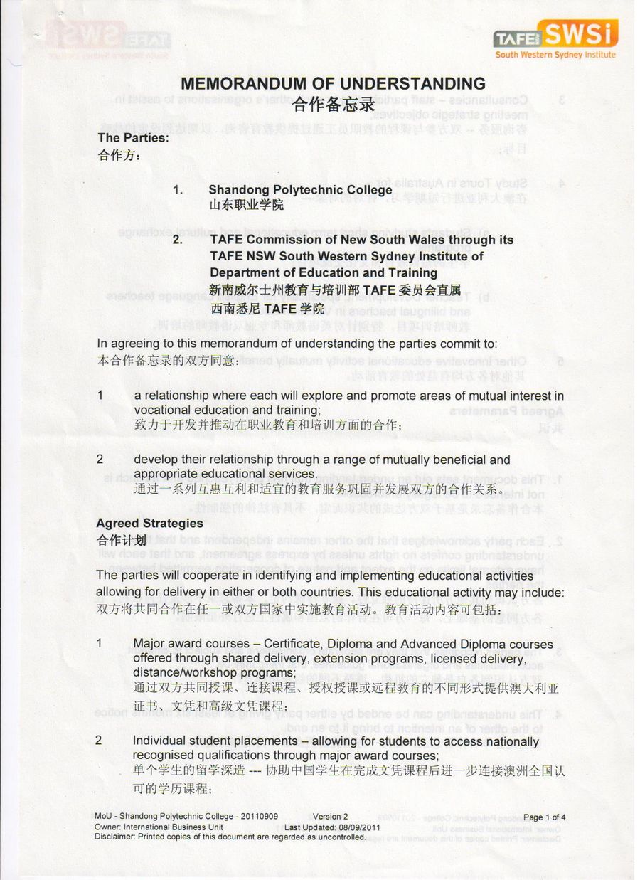 Beplay体育官方网站与西南悉尼TAFE学院合作备忘录