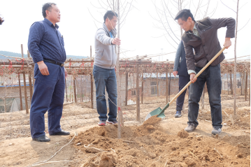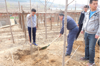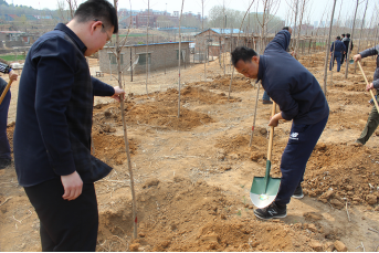 我系支部成员来到学院生态农场,首先领到科学分配好的树苗,而后认真聆听负责学院绿化工作的同志的现场讲解,包括树坑埋土的深浅以及周围土垒的大小,讲解细致又科学,实际操作性强。现场分工明确,有条不紊,分工明确,同志们热情高涨、干劲十足,一起扶树正苗、挥锹培土、踩土压实;你一锹、我一铲,相互配合,每一道工序都做得一丝不苟,真正践行撸起袖子加油干的精神。