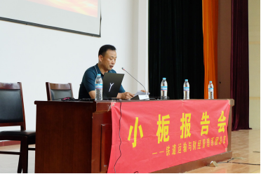 接着,任巍晓进行报告。她感慨怀念了美好幸福的大学生活,并对老师表达了感谢,同时表露出现在作为一名地铁人的初心,为她所在的集团公司感到骄傲和自豪。随后,她为同学们讲解了刚开始实习的困惑、外出他省地铁公司学习的艰苦、自己工作三年的经历。面对就业充满困惑的学弟学妹,她提出了不忘初心、脚踏实地、锤炼品格、勇于奉献四点建议,也对学弟学妹们发出了到济南地铁工作的邀请。