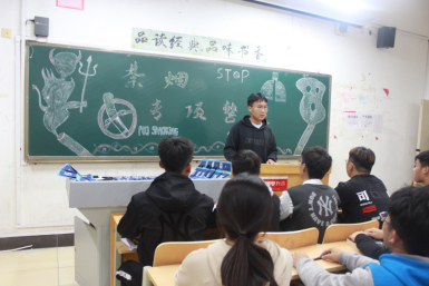 为营造文明、健康、安全的校园环境,培养优良学风和校风,根据学院的相关规定,按照系部领导的要求,我系开展学生禁烟宣传教育主题班会,在班会上各班班长说明吸烟的危害性,并强调严禁所有人在公共场所抽烟,同时宣读了学校关于吸烟和禁烟的有关规定。