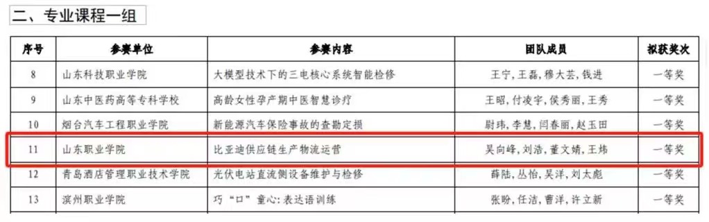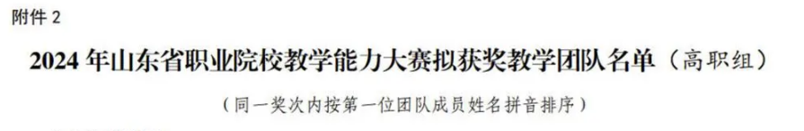 9月6日,山东省教育厅网站公布了2024年山东省职业院校教学能力大赛结果。管理学院的吴向峰、刘浩、董文婧、王炜团队获专业课程一组一等奖。