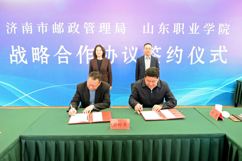 郭培谦、贺方启代表双方签署《济南市邮政管理局与Beplay体育官方网站战略合作协议》。
