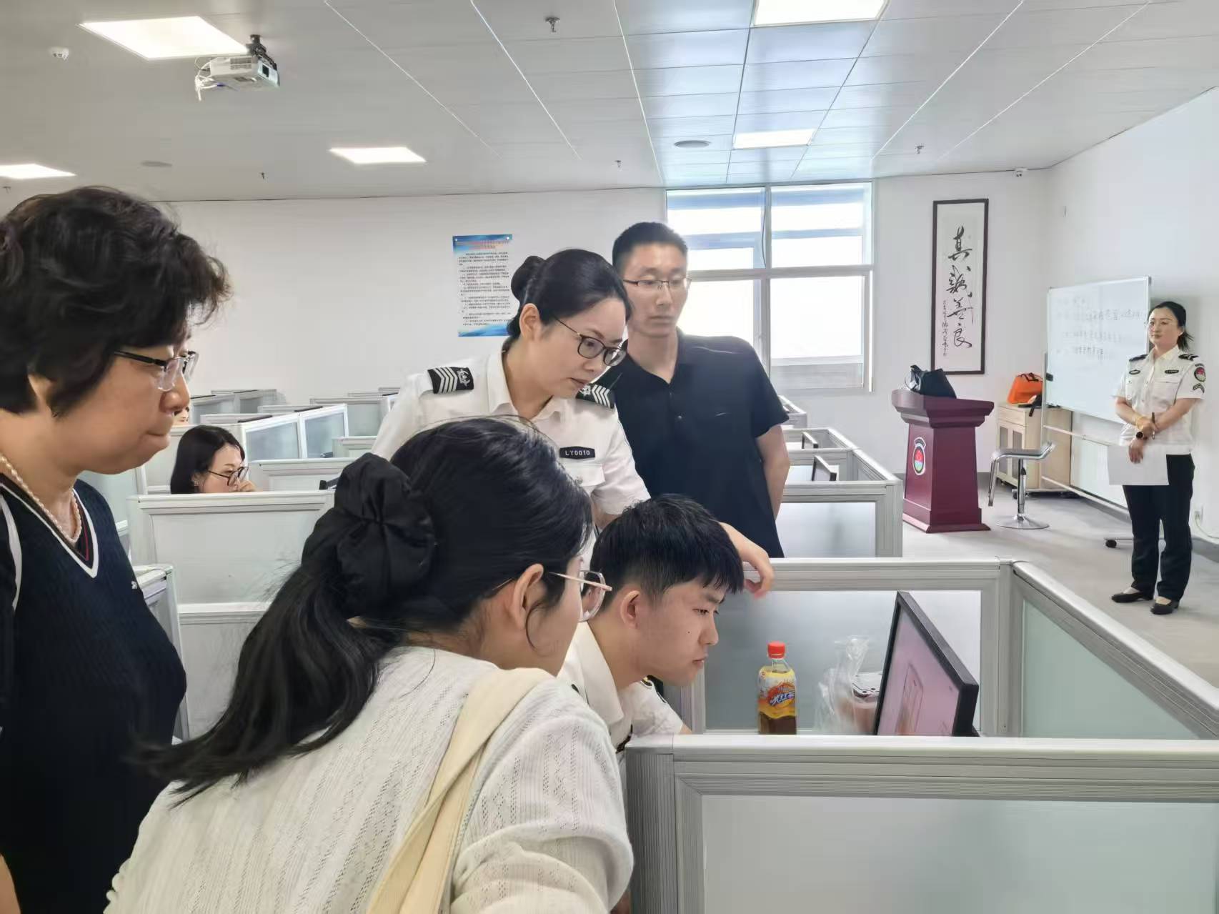 在孟祥建带领下,团队成员参观走访了机场安全检查部及民航安全检查员职业技能鉴定临沂培训中心。在机场安全检查部,团队成员实地参观了机场安检通道、行李查验核心作业区域。孟祥建详细介绍了民航安检行业智能化安检技术的发展趋势、人才需求状况及岗位能力要求等情况。在民航安全检查员职业技能鉴定临沂培训中心,团队成员参观了技能竞赛训练室、安检员职业资格认证室。培训中心主任孙希峰就如何对接职业资格制度,如何开展岗前培训体系建设与团队教师进行了交流,并对优化课程及实践教学设置提出了建议。校企双方围绕加强产教协同与资源建设,实现优势互补等方面进行了深入探讨。