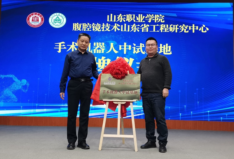 李新华指出,未来制造产业工程研究中心(中试基地)是我校探索科技创新的前沿阵地,要通过本次论坛的深入交流,激发学校科技创新活力,着力提升教师队伍的科研创新能力和技术服务品质,为未来制造产业发展注入新的活力与动力,服务职业教育高质量发展。李新华和田兆辉共同为“未来制造产业工程研究中心-齐鲁医院手术机器人研发中试基地”揭牌。