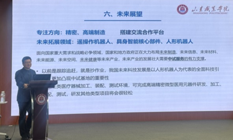 1月9日,未来制造产业工程研究中心(中试基地)科技创新论坛在我校音乐厅举行。副院长李新华、山东大学齐鲁医院腹腔镜技术工程实验室主任田兆辉、科技与社会服务中心主任齐涛、未来制造产业工程研究中心主任李升参加活动,论坛由智能制造学院院长王秋敏主持。