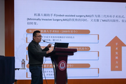 田兆辉作了题为《多孔腹腔镜手术机器人系统研究》的报告,展现了国际上公认的最前沿手术技术,激励师生在科技创新之路上不断追求卓越,勇攀高峰。李升作了《手术机器人研发中试基地工作汇报》,展示了职业教育科技创新在推动研发落地项目中发挥的重要作用。