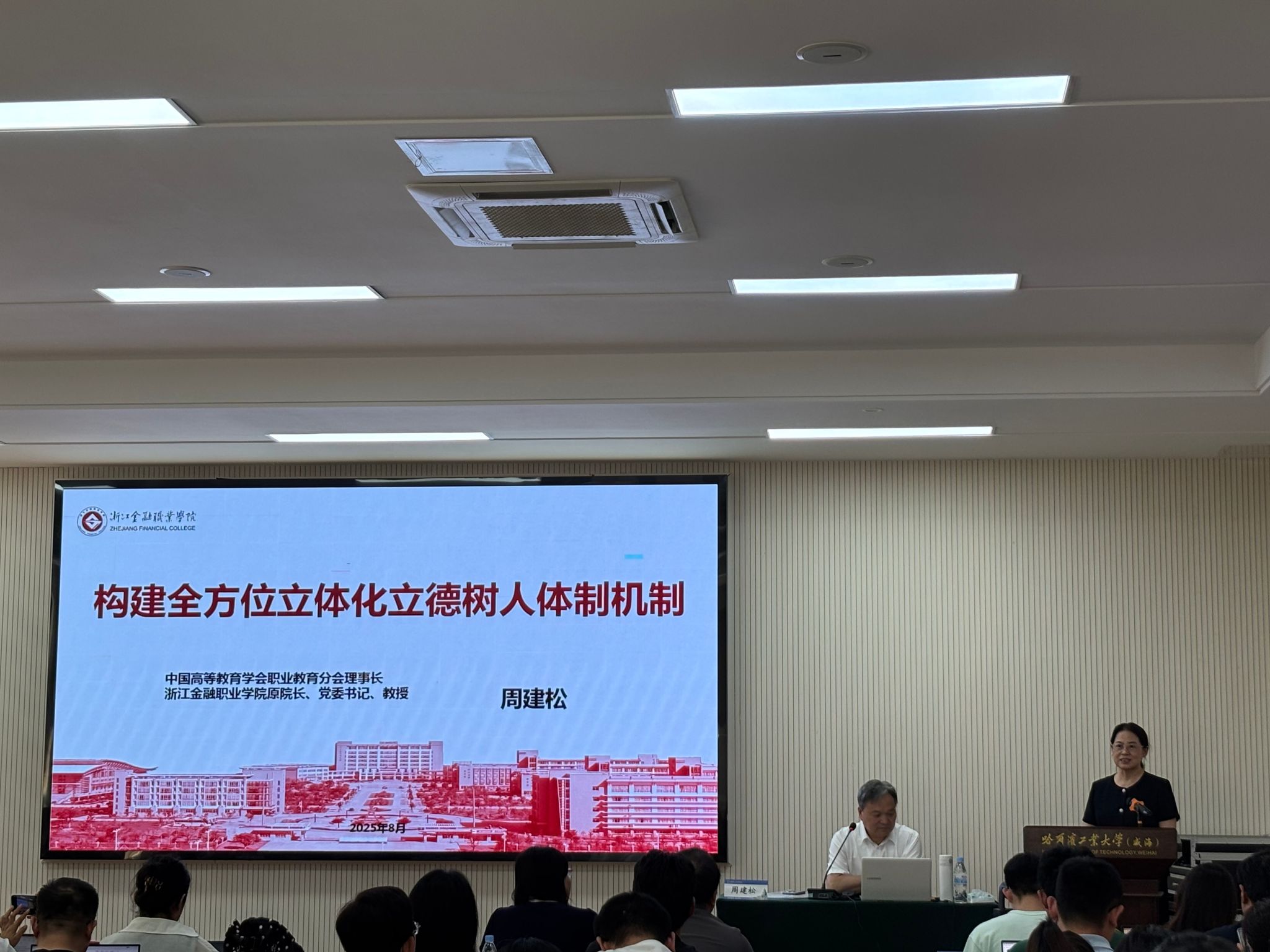 中国高等教育学会职业技术教育分会理事长,浙江金融职业学院原党委书记周建松科学分析了职业教育如何全面落实立德树人根本任务,系统讲解了大思政工作体系的构建逻辑,并聚焦“五育并举”,就如何培养高素质技术技能人才提出了实施路径、方法举措。