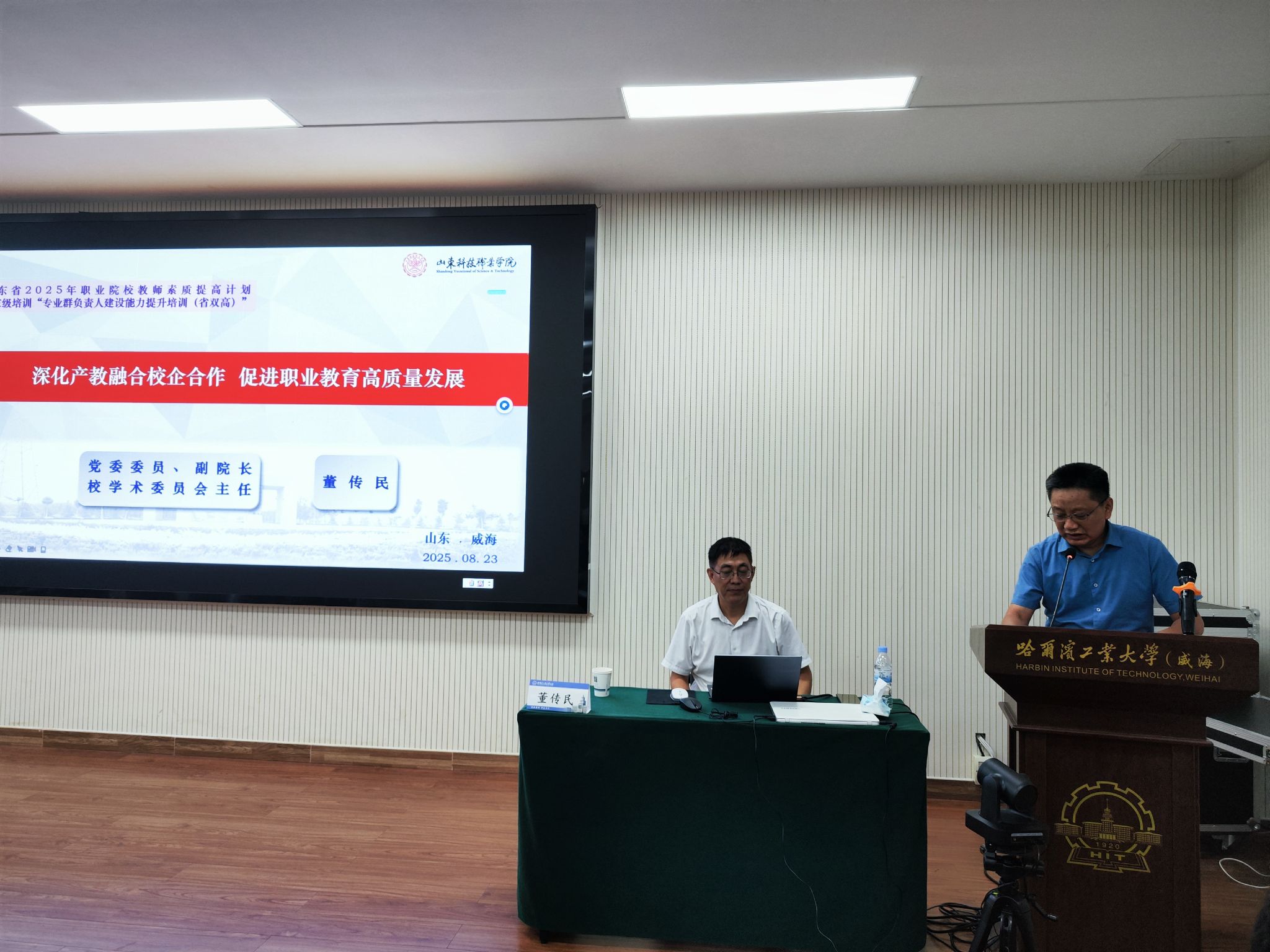 本次培训由我校智能制造学院联合哈尔滨工业大学(威海)继续教育学院共同推进,采用集中研修、岗位辅导等形式分阶段开展,特邀8位国内知名专家围绕立德树人、产教融合、职业本科人才培养、高水平专业群建设、数字化教学、人才培养方案编制、职教出海等专题展开深入讲解与分析。