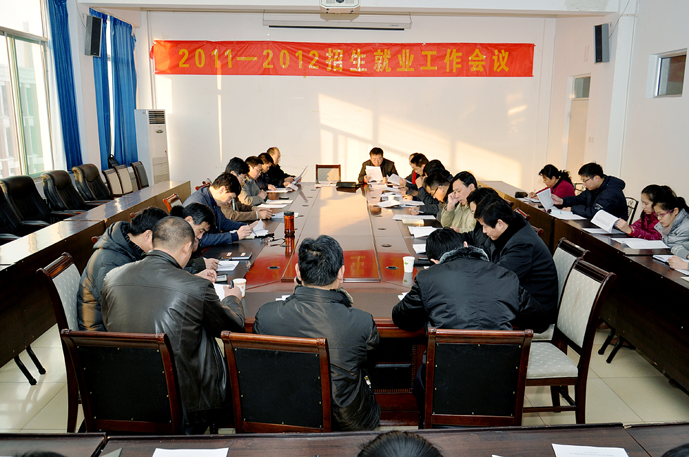 张少飞在会上作2011年度招生和就业工作总结汇报。汇报提出,2011年,我院在全国生源数量明显下降的情况下,第一志愿全部投满,招生计划4500人,报到4395人,实际报到率91.40%,位列全省同类院校第三。取得这样好的成绩,一是学院领导大力支持,系部领导紧密配合;二是分专业招生计划设置合理;三是宣传工作重点突出、手段多样、细致到位;四是招生培训及时跟进,订单拉动作用明显。2012届毕业生3979人,目前已经落实就业岗位75.90%,前景良好,六个经验值得总结:一是稳固既有市场、开辟新的用人单位。仅校内招聘会就组织了129场,开拓的青岛地铁、宁波地铁订单班,更具示范效应;二是通过高校就业工作评估,锻炼了就业工作队伍,提升了工作水平和效率,促使就业工作更加制度化、规范化、常态化;三是各系更加重视就业工作,根据专业特点对接用人单位,就业质量稳步提高;四是路地兼顾、左右逢源。以满足毕业生就业愿望为目的,根据铁路企业和地方企业的人才需求变化,及时调整专业设置和方向;五是加强就业指导,提高学生就业的主动性和就业能力;六是开展创业教育,组织创业大赛,以创业带动就业。
