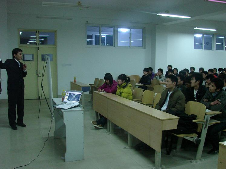 晚上7点讲座正式开始。首先由合尔的老师向在场的学生客观的分析了当前的就业形势,指出目前就业形势艰难,大学生更应该对就业做出科学理性的规划。随后,老师针对同学的就业规划提出了相关的意见,告诫同学们在努力学习的同时,要积极参与社会实践,并对自己的就业做出理性的规划,才会使人生收获赢在起点的喜悦。