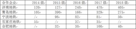 学院积极推进“面向山东、辐射全国”的订单培养战略布局,近年来,先后与深圳、宁波、青岛、杭州、济南等15个地铁公司组建120多个订单班,累计输送人才近3800名。2018届毕业生中,订单培养人数达839人,占毕业生总数的18%。学院不断深化“订单培养”人才培养模式改革,与企业合作开展“现代学徒制”“校企一体化合作办学”等试点。“订单培养”模式的建立,打造了“入学即就业”的培养方式,构建起学生进入企业的直接通道,进一步促进产业、岗位、教学的深度融合,实现了学习实践的无缝衔接,推动学生、员工职业角色的顺畅转换。